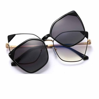 91520 Magnet Glasses Set Women Double Use Anti Blue Light Outdoor Glasses Square Frame Tr90 Sunglasses